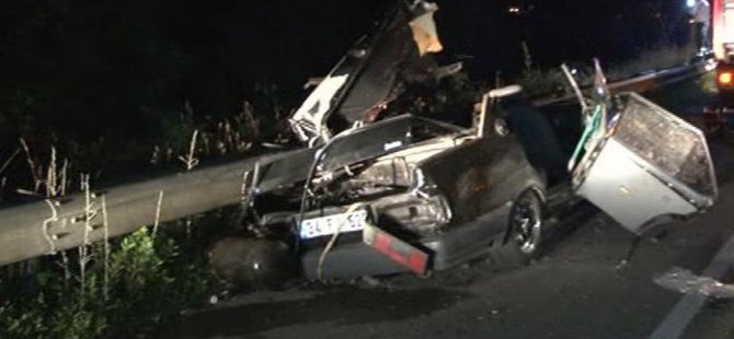 İstanbul'da virajı alamayan otomobil karşı yönden gelen hafriyat kamyonu ile çarpıştı. Yaklaşık 70 metre sürüklenerek hurdaya dönen otomobilde bulunan 2 kişi öldü, bir kişi ise ağır yaralandı.