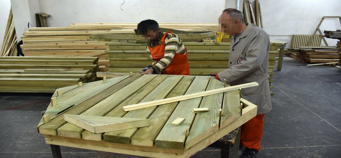 Kurumun 380 kapasitesi bulunduğunu, bunun da yüzde 80'inin dolu olduğunu belirten Türkmen, "Kurumumuzda 7 atölyemiz var. Marangoz atölyemizde özellikle Karadeniz Bölgesi'ndeki milli parklara kameriye ve piknik masası yapıyoruz. Burası cezaevimizin lokomotif atölyesi diyebiliriz." dedi.