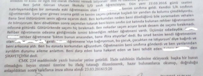 İşte 7 yaşındaki öğrencinin polise verdiği ifade: