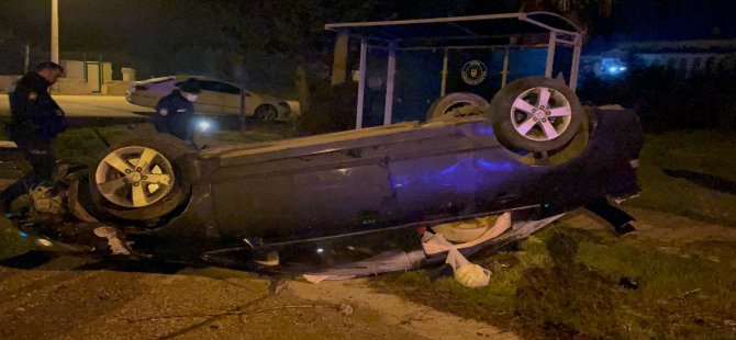 Bursa’nın İznik ilçesinden Yenişehir istikametine seyir halindeyken kontrolden çıkan otomobil ters şeride geçip İznik adliyesinin önüne uçarak takla attı.