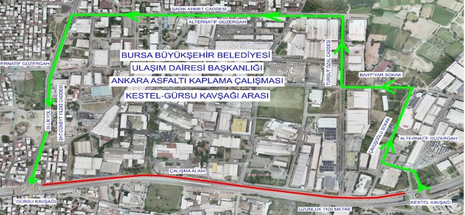 Bursa Büyükşehir Belediyesi tarafından yapılacak asfalt yenileme çalışmaları çerçevesinde Bursa - Ankara yolu Bursa geliş istikameti Gürsu Kavşağı ile Kestel Kavşağı arası 1 Eylül Cuma günü saat 23.00’dan 2 Eylül Cumartesi günü saat 06.00’a kadar ve 2 Eylül Cumartesi günü saat 23.00’dan 3 Eylül Pazar günü saat 11.00’a kadar trafiğe kapatılacak.