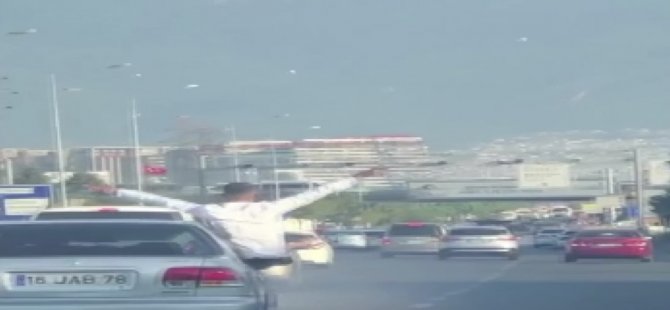 Bursa’da asker eğlencesi yapan konvoydaki bir aracın camından havaya havai fişek atılması bu kadarına da pes dedirtti.