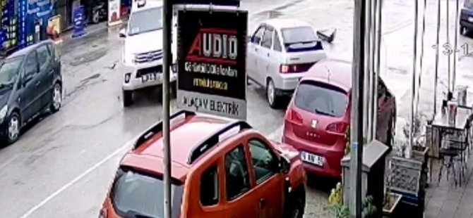 Bursa'nın İnegöl ilçesinde meydana gelen kazada kamyonet ile çarpışan otomobilin sürücüsü yaralandı. Kaza anı bir işyeri güvenlik kameralarına saniye saniye yansıdı.