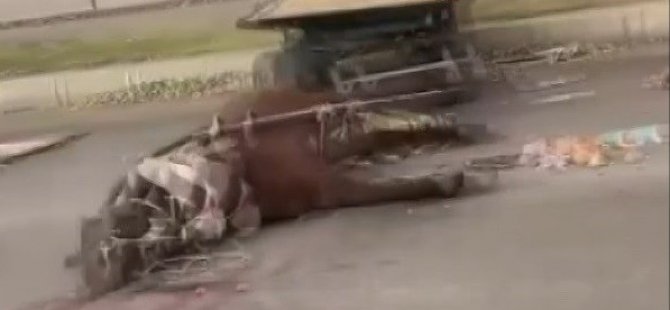 Bir araç yavaşlarken, gecenin karanlığında fark edilmeyen at arabası ile servis midibüsü kafa kafaya çarpıştı. Çarpışmanın şiddetiyle at olay yerinde telef olurken, at arabasında bulunan kişi ise yaralandı.
