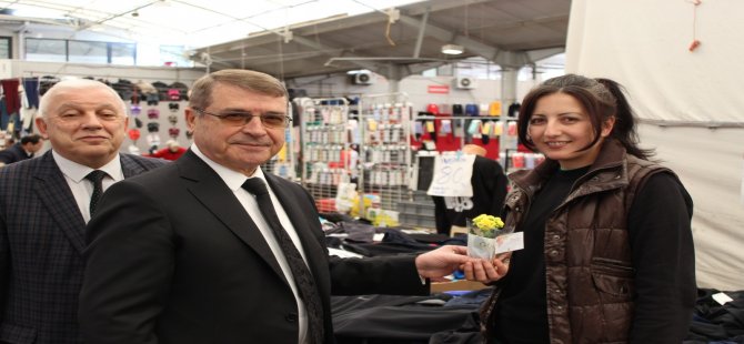 8 Mart Dünya Kadınlar Günü kapsamında Nilüfer'de bulunan Agora Çarşısı ve Ataevler Durukent Giyim Pazarı'ndaki kadın esnaf ile BESOB çatısı altında çalışan kadın personeli ziyaret eden BESOB Başkanı Fahrettin Bilgit, kadın esnaf ve kadın personelin, 8 Mart Dünya Kadınlar Günü'nü kutladı, çiçek hediye etti.