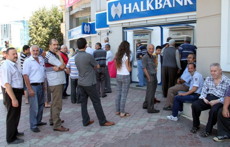 Emeklilerin maaşlarını almak istediği bir bankanın ATM'lerinde erken saatlerde para bitince kuyruk uzadıkça uzadı. ATM'lerde para kalmaması sebebiyle uzun süre güneşin altında banka önünde beklemek zorunda kalan emekliler isyan etti. Bütün şubeleri gezmelerine rağmen para alamadıklarından yakınan emekliler, “Bütün şubeleri gezdik, en son burasıymış, burada da bekliyoruz. Emeklilerin çilesi, iki saati geçti bekliyoruz. Verecekleri para zaten devede kulak. Para bekliyoruz, canları isterse parayı yatıracaklar bizde çekeceğiz. Kimi diyor para bitmiş, akşamdan doldurmuşlar şimdi bitmiş para. Emekliler bekliyor burada.” şeklinde konuştular.