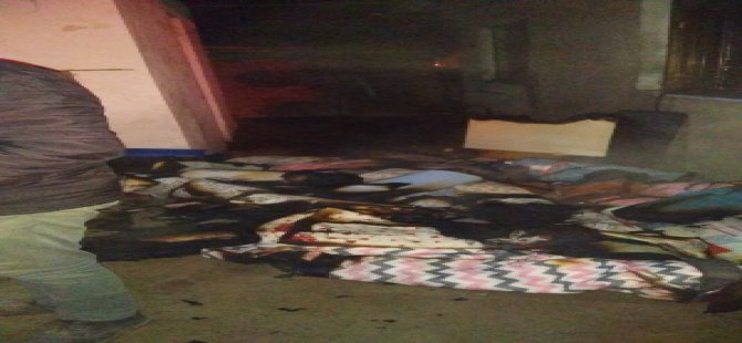 Bakıcıların kaldığı bir tavukhane lojmanının bacasından düşen kıvılcım, birinci katta bulunan kumaş toplarını alevlendirdi.