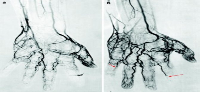 Hastalık belirtilerini tırnaklarda gösterebilir . Çünkü yaşanan tıkanma sonucunda kılcal damarlar tutulduğu için tırnaklarda iyileşmeyen yaralar ve enfeksiyonlar oluşur. Örneğin tırnak keserken yaşanan bir kaza uzun zaman geçmesine rağmen iyileşmiyorsa kişinin mutlaka bir uzmana başvurması önemlidir. Bunun yanı sıra eğer kişinin parmakları sürekli soğuksa ve morarmalar görülüyorsa basit bir üşüme olarak düşünülmemelidir. Çünkü bu hastalık önemsenmediğinde çok ciddi kayıplara götürebilir.