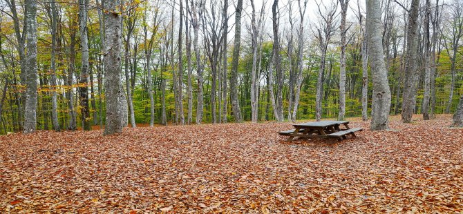 Sonbaharın yeşilden kızıla dönen tüm renklerine tanık olan doğasever, dökülen yapraklarla kaplı parkurda eşsiz manzara eşliğinde yürümenin keyfini çıkardı.
