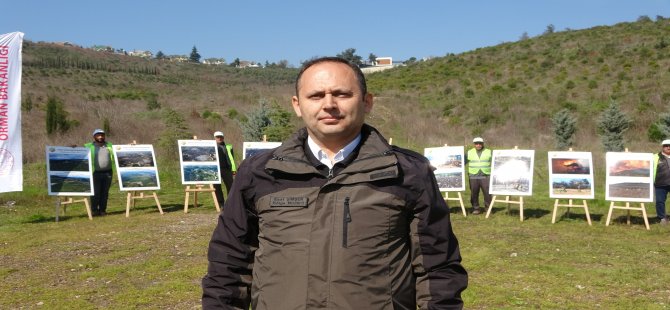 Orman yangınında zarar gören alanın tamamının ormanlaştırıldığını ifade eden Bursa Orman Bölge Müdürü Esat Şimşek, "İçinde bulunduğumuz alan 11 Ağustos 2018 yılında çıkan Mudanya Çağrışan alanı içerisindeyiz. Burada 36 hektarlık alan orman yangınında zarar gördü. Bu 36 hektarlık alan içerisinde çalışma arkadaşlarımız hızlı ve etkili müdahale ile 1 gün içerisinde bu alanı kontrol altına aldılar. Hemen arkasından bu alanın tekrar orman olabilmesi için gerekli adımların atılması, başka bir faaliyet ve amaç için kullanılmaması için çalışmalara başladılar. İlk iş olarak içerisinde zarar görmüş ağaç ve çalıları temizleyerek araziyi toprak işlemesi yaparak fidan dikimi haline getirdiler. Kısa bir süre içerisinde ağustos ayından aralık ayına kadar bu faaliyetleri yerine getirdik. İlk fidanı da aralık ayında toprakla buluşturduk. Toplam saha içerisinde 48 bin fidan toprakla buluşturuldu, bunun 15 bin tanesi de tıbbi aromatik bitki. Saha içerisinde hiçbir alan kaybımız olmadı" şeklinde konuştu.