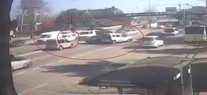 Kaza, saat 13.30 sıralarında Bursa-Ankara yolu Ankara istikameti Merinos geçidi yakınlarında meydana geldi. Kent kamerasına yansıyan kazada, ana yolda hızla ilerleyen otomobillerin arasından karşıya geçmek isteyen iki kişinin yola atlamasıyla ortalık savaş alanına döndü.