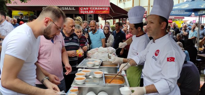 Bursa'da 600 yıldır yılda bir kez pişen çorbadan içmek isteyenler uzun kuyruklar oluşturdu.