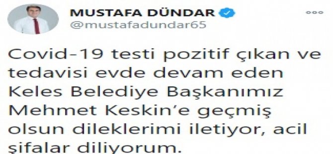 Keskin ile ilgili haberi sosyal medya hesabından geçmiş olsun dileğinde bulunan Osmangazi Belediye Başkanı Mustafa Dündar duyurdu.