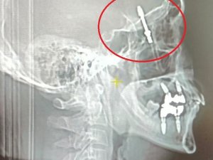 Baygınlık geçiren Yılmaz, kliniğin kendi aracıyla hastaneye kaldırıldı. Tomografi çekiminde vidanın beynine kadar ilerlediği ortaya çıktı. Acil ameliyata alınan talihsiz adam, saatler süren operasyonla ölümden döndü.
