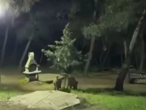 Domuzlar bir süre çevrede dolaştıktan sonra piknik alanındaki çeşmeye yöneldi.