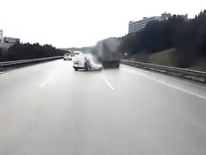 Herkesin yüreğini ağzına getiren anlar, bir kamyonun araç içi kamerasına saniye saniye yansıdı.