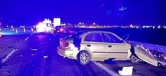 Edinilen bilgiye göre, gece saat 01.50 sıralarında İzmir-İstanbul Otoyolu Yolağzı Mahallesi mevkiinde Haluk Acer'in (54) kullandığı 06 MOA 98 plakalı otomobil, sürücünün direksiyon hakimiyetini kaybetmesi sonucu bariyerlere çarptı.