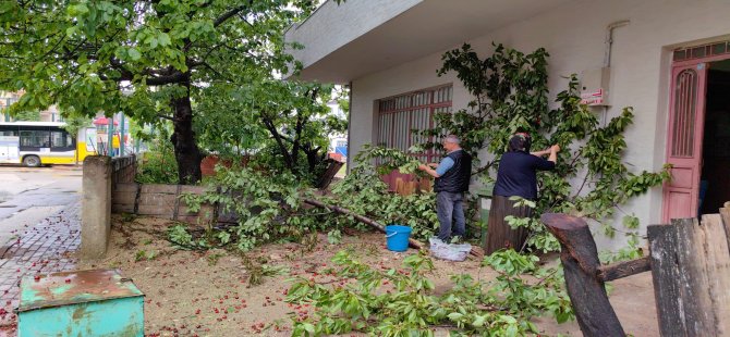 Sağanak yağış ve fırtına sırasında evinin önündeki ağaca çıkarak kiraz toplayan adam ise saniyelerle ölümden kurtuldu.