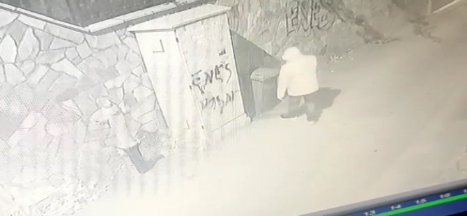 Bir süre uğraştıktan sonra zinciri koparttı. Şahıs çöp kovasını çalarak gözden kayboldu.