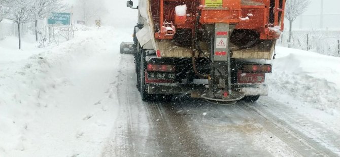 Devam eden yağış nedeniyle kapanan yolları tekrar açan ekipler, bir yandan da tuzlama çalışması yaptı. Nilüfer Belediyesi, karla mücadele çalışması çerçevesinde şimdiye kadar toplam 500 ton tuz kullandı.