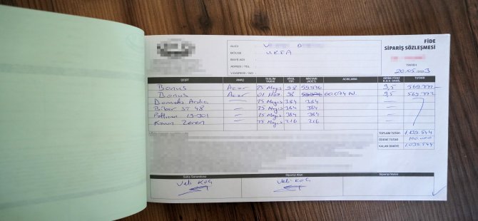 V.D., paranın 250 bin liralık peşin kısmının oğlu D.D. tarafından gönderileceğini belirterek fidelerin teslimini istedi. V.D.’nin verdiği 4 adet çeki ve oğlu D.D.'den IBAN adresine gönderilen 250 bini teslim alan Koç, fideleri Urfa’da istenen adrese gönderdi.