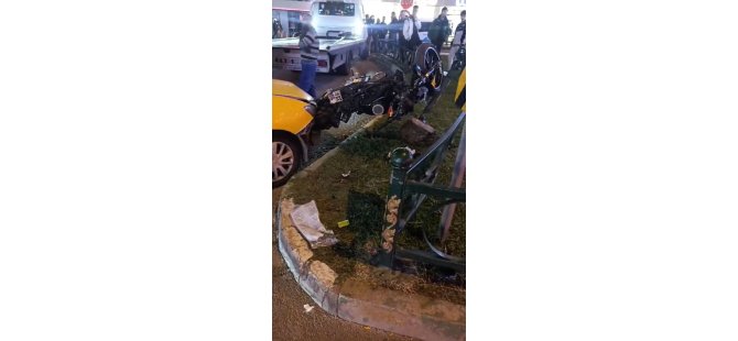 Bursa'da motosiklet ile ticari taksinin karıştığı kazada 1'i ağır 2 kişi yaralandı.