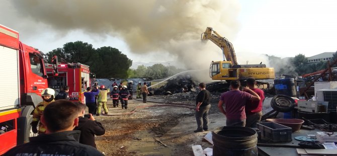 Edinilen bilgiye göre, merkez Nilüfer ilçesi Çalı Mahallesi'nde eski buzdolaplarının toplandığı geri dönüşüm tesisinde yangın çıktı. Kısa sürede alev alan buzdolapları alev topuna döndü. İş yeri çalışanları alevlere müdahale etmeye çalışsa da başarılı olamadı.