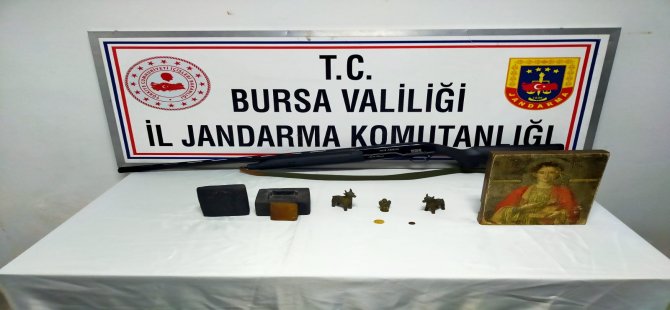 Bursa'nın Karacabey ilçesinde ikamet eden 21 yaşındaki H.A. isimli kişinin elinde bulundurduğu tarihi eser niteliği taşıyan tablo, deri kitap ve tarihi objeleri satmak için alıcı aradığını belirleyen Bursa İl Jandarma Komutanlığına bağlı ekipler harekete geçti.