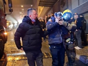 Polis ekipleri çevrede güvenlik önlemi alırken, itfaiyenin yangını söndürme ve kurtarma çalışmaları devam ediyor.
