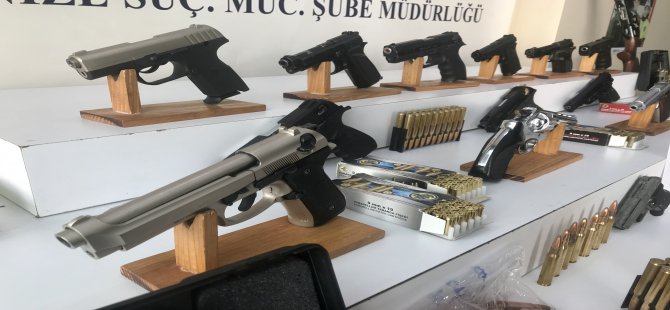 Şüphelilerin adreslerine ve silah imalathanelerinde ele geçirilen silah ve silah parçaları sergilendi. Şüphelilerin ürettiği anahtarlık şeklindeki 2 mermi kapasiteli suikast silahı ise silahlar arasında en dikkat çekeni oldu.