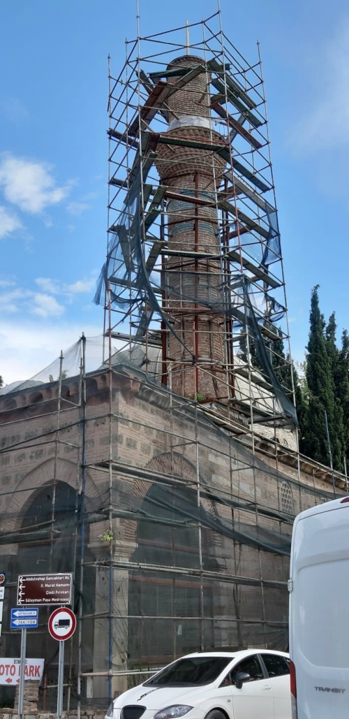 Bursa Valiliği, İznik ilçesinde tadilatı duran Mahmut Çelebi Camii’nin minaredeki sorunlardan dolayı olduğunu açıkladı.