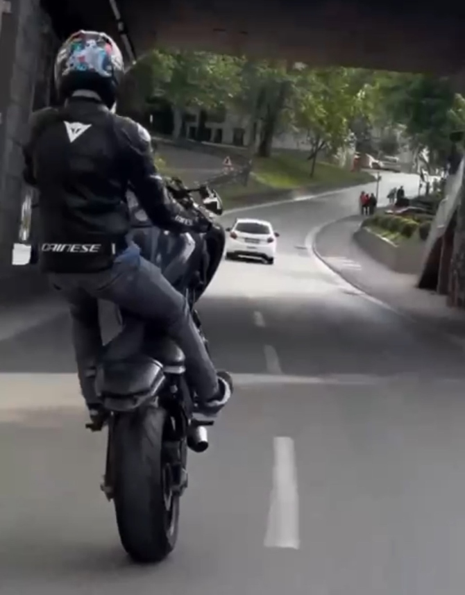Edinilen bilgiye göre, tek teker yaparak seyreden motosiklet sürücüsü hem kendini hem de trafiği tehlikeye düşürdü.