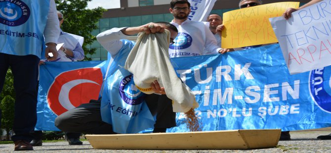 Bursa Teknik Üniversitesi'nin, "görevde yükselme sınavı'nda haksızlık yapıldığını ve yönetimin teknik değil arpalık üniversitesi gibi davrandığını" iddia eden Türk Eğitim-Sen Bursa 2'nolu şube temsilcileri, kampüsün bahçesinde 'arpalı' protesto yaptı.
