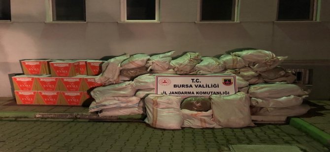 Bursa İl Jandarma Komutanlığı ekipleri tarafından yapılan baskında piyasa değeri 1,5 milyon lira olan 637 bin 500 adet sigara, 1 buçuk milyon makaron ve 115 bin 200 adet sigara filtresi ele geçirildi.