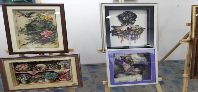 Mudanya Halk Eğitim Merkezi (HEM) Müdürlüğü, dekoratif el sanatları atölyesi kursiyerlerinin "Doğadan Sanata Üç Boyut" adlı sergisini bir alışveriş merkezinde açtı.