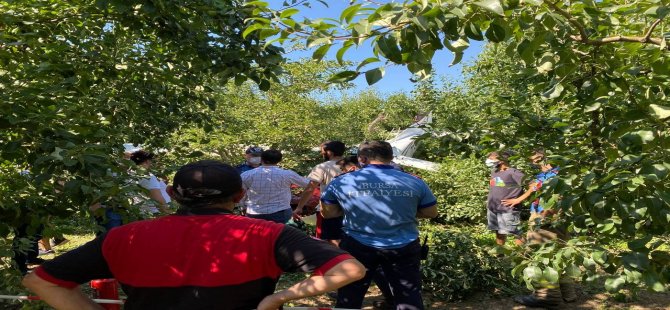 Bursa'da armut bahçesine mecburi iniş yapan Cesna tipi eğitim uçağının motor arızası yaşadığı öğrenildi. Uçaktaki kadın öğrenci ile pilot hafif yaralanırken, ekipler soruşturma başlattı.