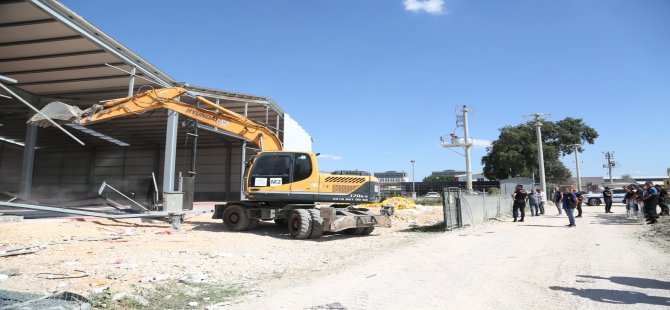 Ekipler daha sonra Kayapa Mahallesi’ne geçti. Yine tarım alanına yapılan 800 metrekare kapalı alana sahip işyeri, iş makinelerinin müdahaleleriyle yıkıldı.