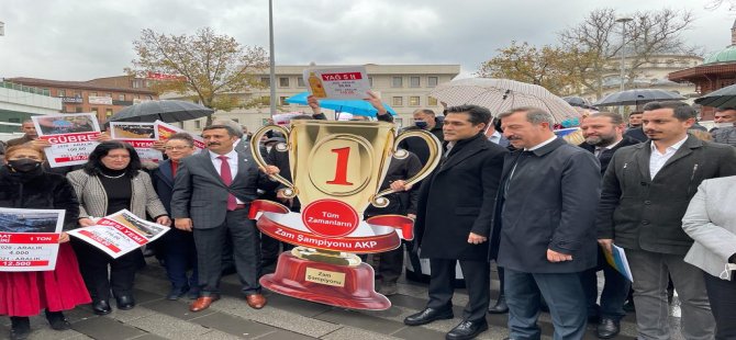 "Koltukta biraz daha fazla kalabilmek uğruna zaman kazanmaya çalışmanızın ağır faturasına, bu millet daha ne kadar katlanacak? Yazık günah değil mi? Sizin çarşıdan, pazardan, market raflarından haberiniz var mı? 5’er, 6’şar maaşlı danışmanlarınızın masanıza koyduğu pembe tablolara değil, artık kaldırın kafanızı da vatandaşın dert doldurduğu filesindeki gerçek tablolara bakın! O hazin tablolarda ne yazıyor biliyor musunuz? Biz söyleyelim: ‘Tüm Zamanların Gerçek Zam Şampiyonu AK Parti!’ yazıyor! Son bir yılda temel tüketim ve ihtiyaç maddelerindeki fiyat patlamasına bakar mısınız?İşte bu acı tablo nedeniyledir ki; ZAM ŞAMPİYONLUĞU KUPASINI kazandınız. Her geçen gün dibe vurdurduğunuz, yoksullaştırdığınız, eline geçen üç kuruş parasını pul ettiğiniz çileli vatandaşlarımız adına bu kupayı sizlere takdim etmekten hicap duyuyoruz."