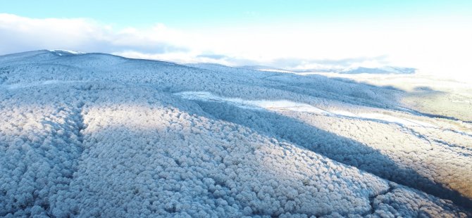 Ormanlık alanlar beyaza büründü. Muhteşem manzara drone ile havadan görüntülendi.