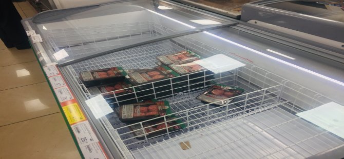 Ucuz etin satışa çıktığı günden bu yana diğer Tarım Kredi Kooperatifi Marketlerini de dolaştım ama ucuz ete ulaşamadım. 10 gündür market market dolaşıyorum ve ucuz etin yüzünü bile görmedim. Delil olsun diye boş reyonların fotoğrafını çektim.