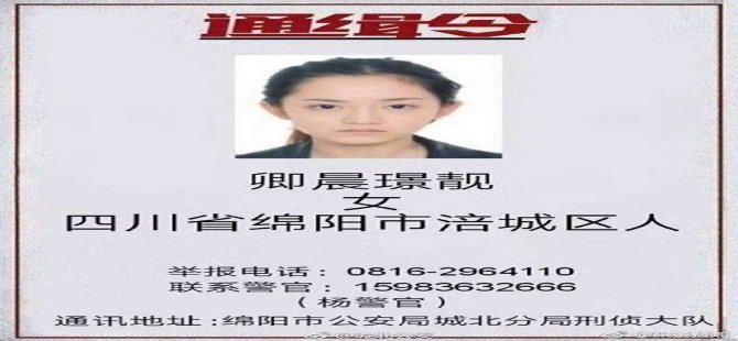 Adının Qingchen JingJing olduğu öğrenilen 19 yaşındaki kadının, hakkında yakalama emrinin çıkarılmasının ardından teslim olduğu öğrenildi.