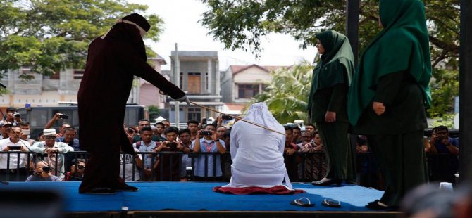 Endonezya'nın Açe bölgesinde yapılan bir otel baskını sonrasında gözaltına alınan 3 kadın ve 3 erkek kırbaç cezası aldı. Bugün meydanda kırbaç cezası uygulanırken, iki kadın kırbaç darbeleri sonrasında alandan güçlükle çıkabildi.