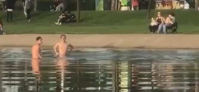 Bursa’da hava sıcaklığının 20 derecenin üzerine çıkmasıyla serinlemek isteyen çocuklar çareyi süs havuzunda buldu. Çocukların süs havuzunda yüzdüğü anlar çevredeki vatandaşların amatör kamerasına yansıdı.
