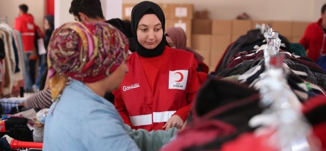 Afetin ilk anından itibaren bölgedeki Kızılay profesyonel ekiplerine her türlü desteği sağlayan gönüllüler sosyal marketlerde de aktif görev alıyor.