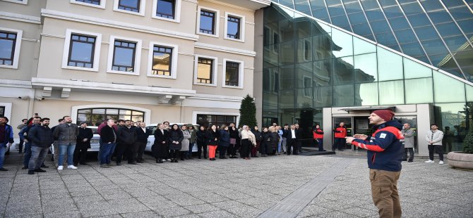 Tatbikat sırasında belediye personeli yaşam üçgeni pozisyonu aldı. Yaklaşık bir dakika sonra belediye binasındaki personel, görevlilerin yönlendirmesi ile binayı tahliye etti. Tahliye sırasında asansörlerin kullanılmasına izin verilmedi. Tahliye olan tüm personel ve vatandaşlar binanın önündeki toplanma alanında bir araya geldi.