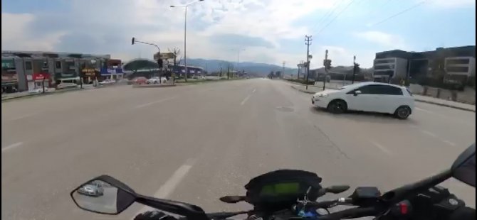 Kırmızı ışıkta hızla geçen bir motosiklet sürücüsünün karıştığı kaza ise kask kamerasına yansırken, başka bir sürücü kontrolünü kaybedip karşı şeritten gelen araca çarptı. Kaza anları güvenlik kameralarına anbean yansıdı.