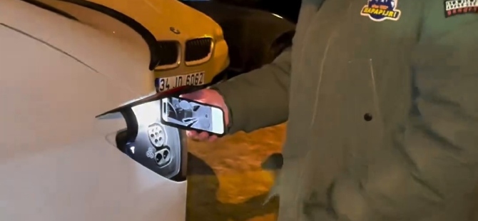 Çabakçor, yardıma gelen Renault marka aracın aküsünden elektrik alarak aracını şarj istasyonuna çekti.
