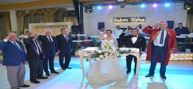Evlenen çiftin nikah memurluğunu yapan Belediye Başkanı Ali Özkan, şahitler ve davetlilerle birlikte nikah töreninin ardından asker selamı verdi. Bu anlamı hareketin ardından salonda duygu dolu anlar yaşandı.