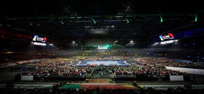 EURO 2024'te Fransa ile Kuzey Makedonya'nın, Almanya ile İsviçre'nin karşılaştığı açılış maçları, futbol stadyumundan hentbol salonuna dönüştürülen MERKÜR Spiel-Arena'da oynandı. Fransa'nın, Kuzey Makedonya'yı 39-29 mağlup ettiği, Almanya'nın da İsviçre'yi 27-14 mağlup ettiği karşılaşmaların oynandığı dev salonda 53 bin 586 kişi ile hentbolda dünya seyirci rekoru kırıldı.
