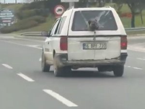 İlginç anlar, Bursa-Ankara karayolu üzeri İnegöl girişinde kayda alındı. Sürücüsünün ismi öğrenilemeyen kamyonetin arka camının kırık olduğu görüldü. Camdan başını dışarı çıkaran köpek, trafikteki diğer sürücülerin dikkatini çekti. Köpeğin rahat tavırları ve etrafı meraklı gözlerle izlemesi görenleri gülümsetti.